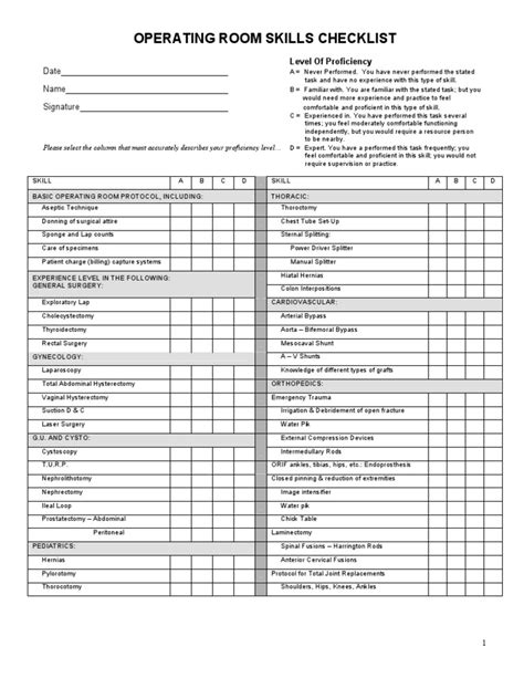 Aorn Operating Room Skills Competency Checklist